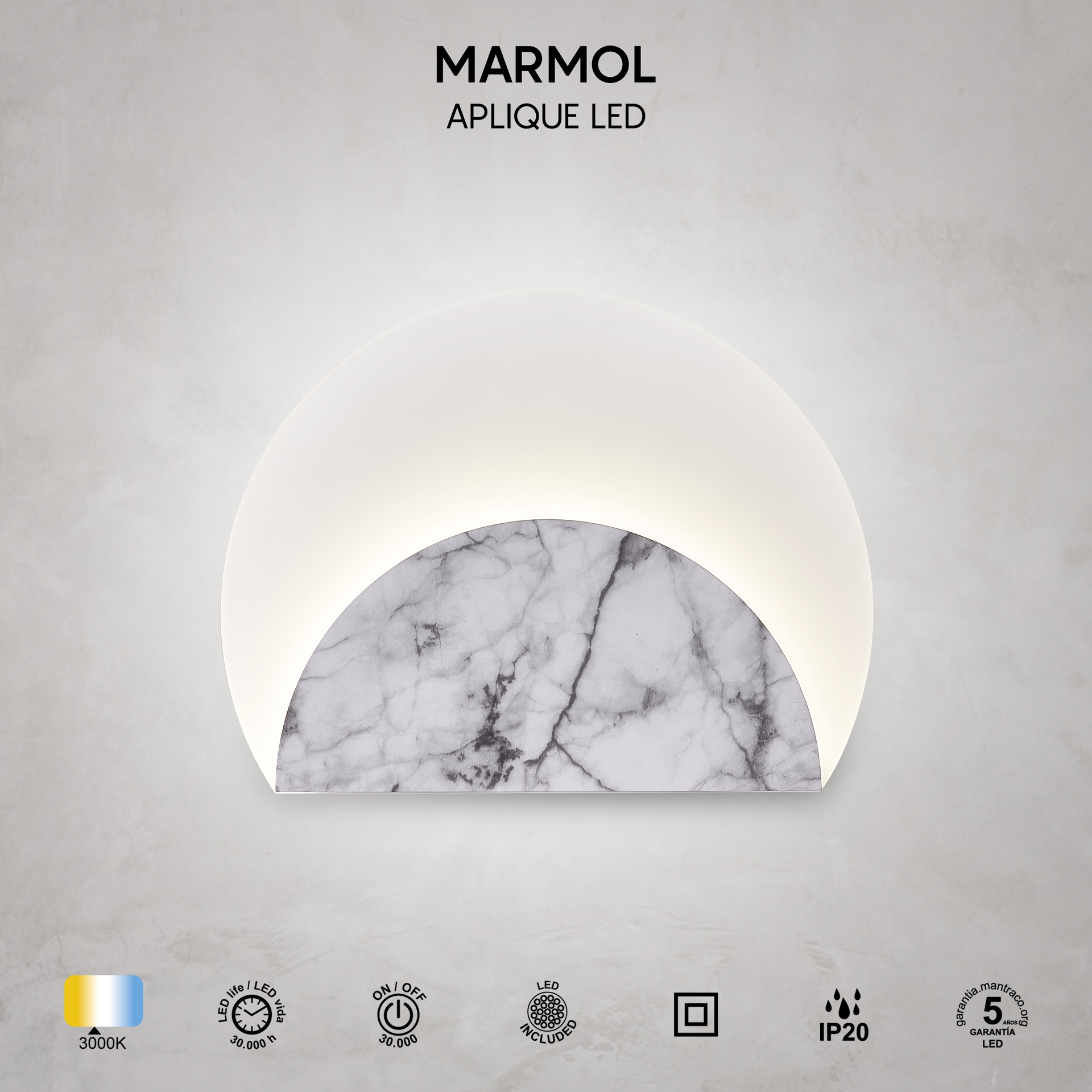 MARMOL, conçu par MANTRA TEAM, propose une interprétation contemporaine et technique du design intérieur. Elle comprend des appliques murales, des lampadaires et des plafonniers, offrant des solutions adaptables à différents espaces. Fabriqués en acier, acier/acrylique et aluminium/acier, les luminaires sont disponibles en blanc ou en noir, offrant robustesse et style à chaque application. Ils intègrent la technologie LED avec des températures de couleur de 3000 K, garantissant confort et efficacité énergétique. Grâce à leur indice de protection IP20, ils sont parfaits pour les intérieurs, garantissant durabilité et fiabilité. Cette famille a été créée pour répondre aussi bien aux environnements décoratifs qu’aux projets d’éclairage exigeants.