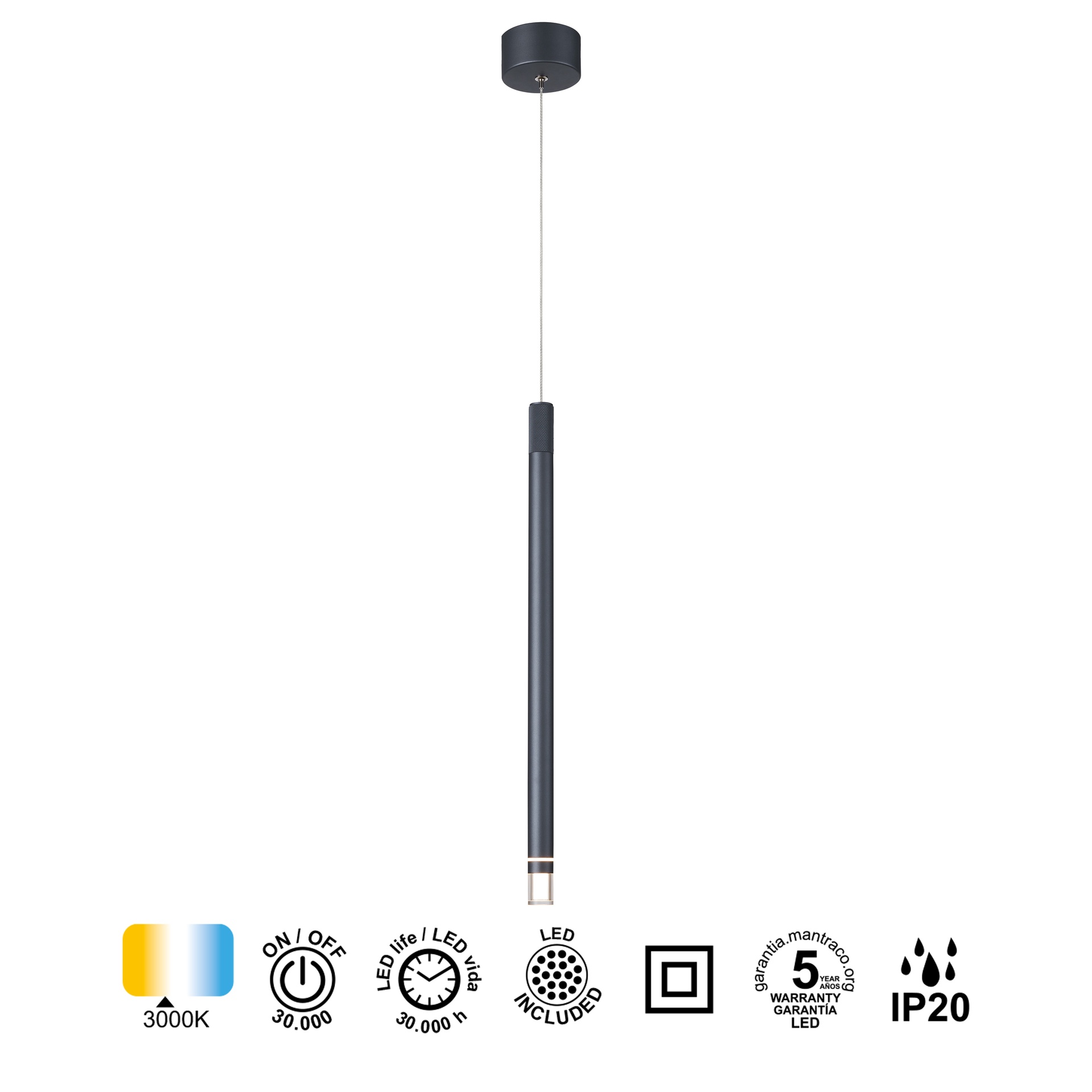 MOANA * 1L LED 7W SUSPENDU - GRIS FONCÉ