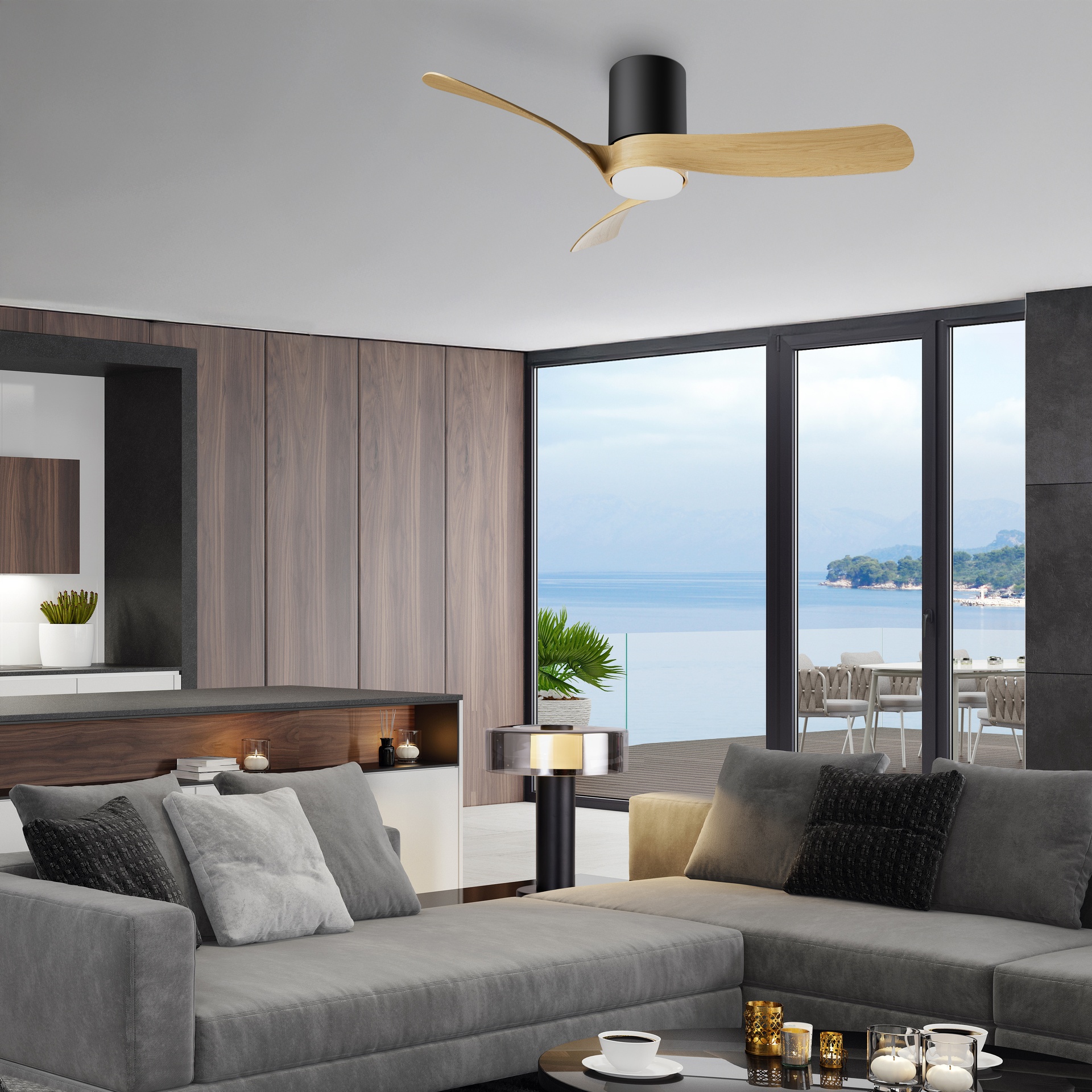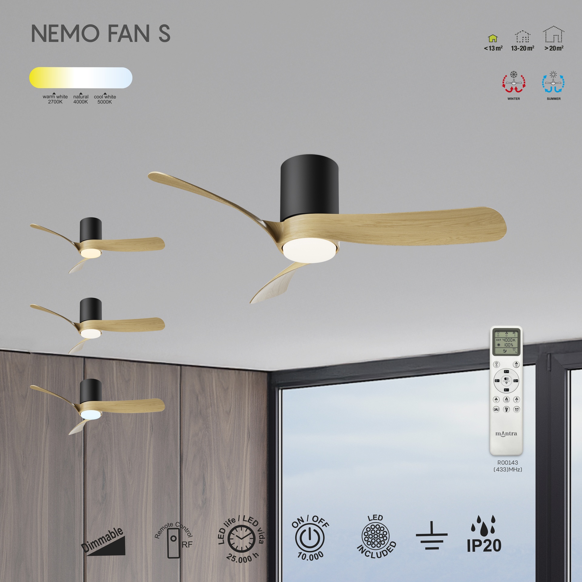VENTILATEUR LED MOYEN NEMO S* - NOIR + BOIS ****L****