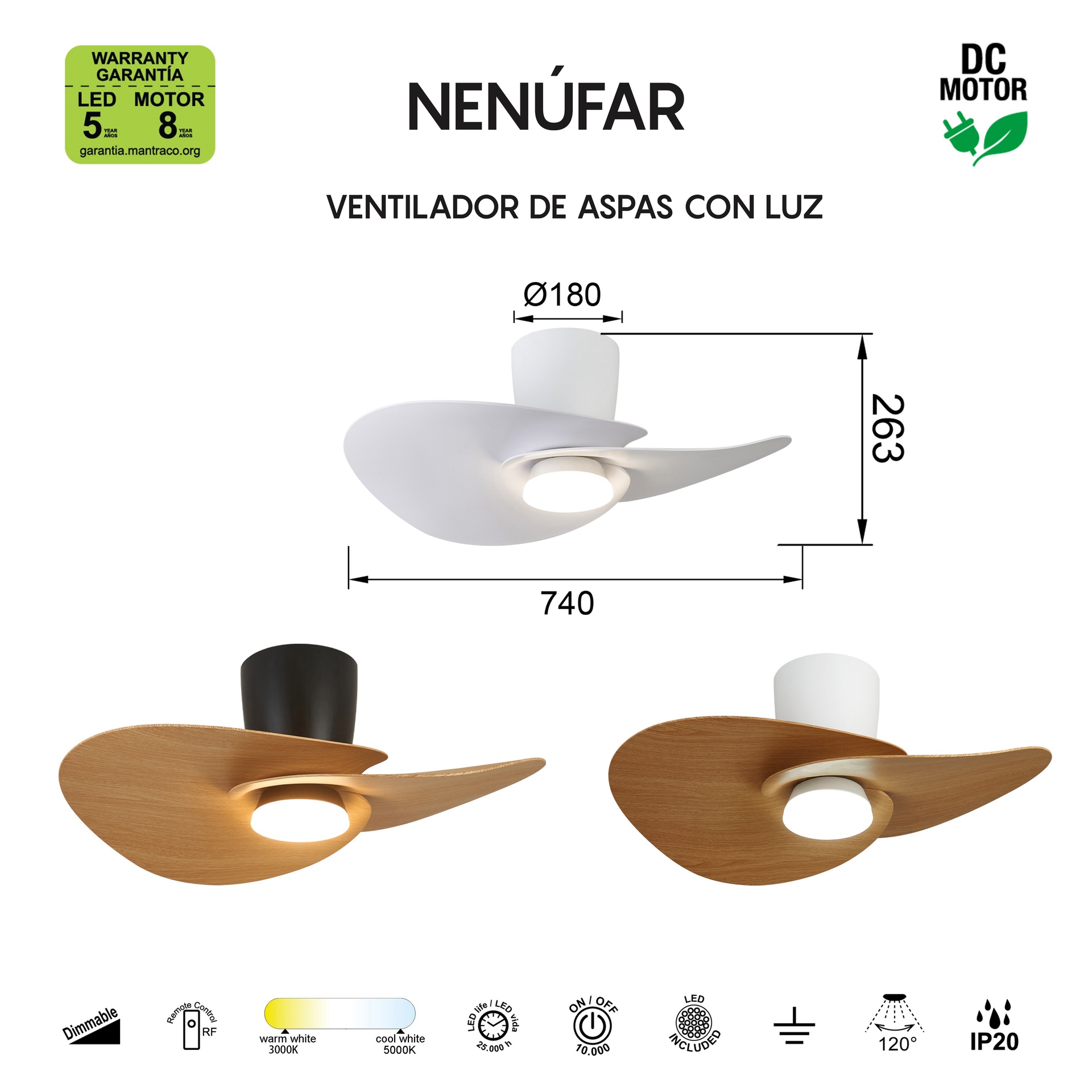 NENUFAR * VENTILATEUR PLAFONNIER - NOIR-BOIS