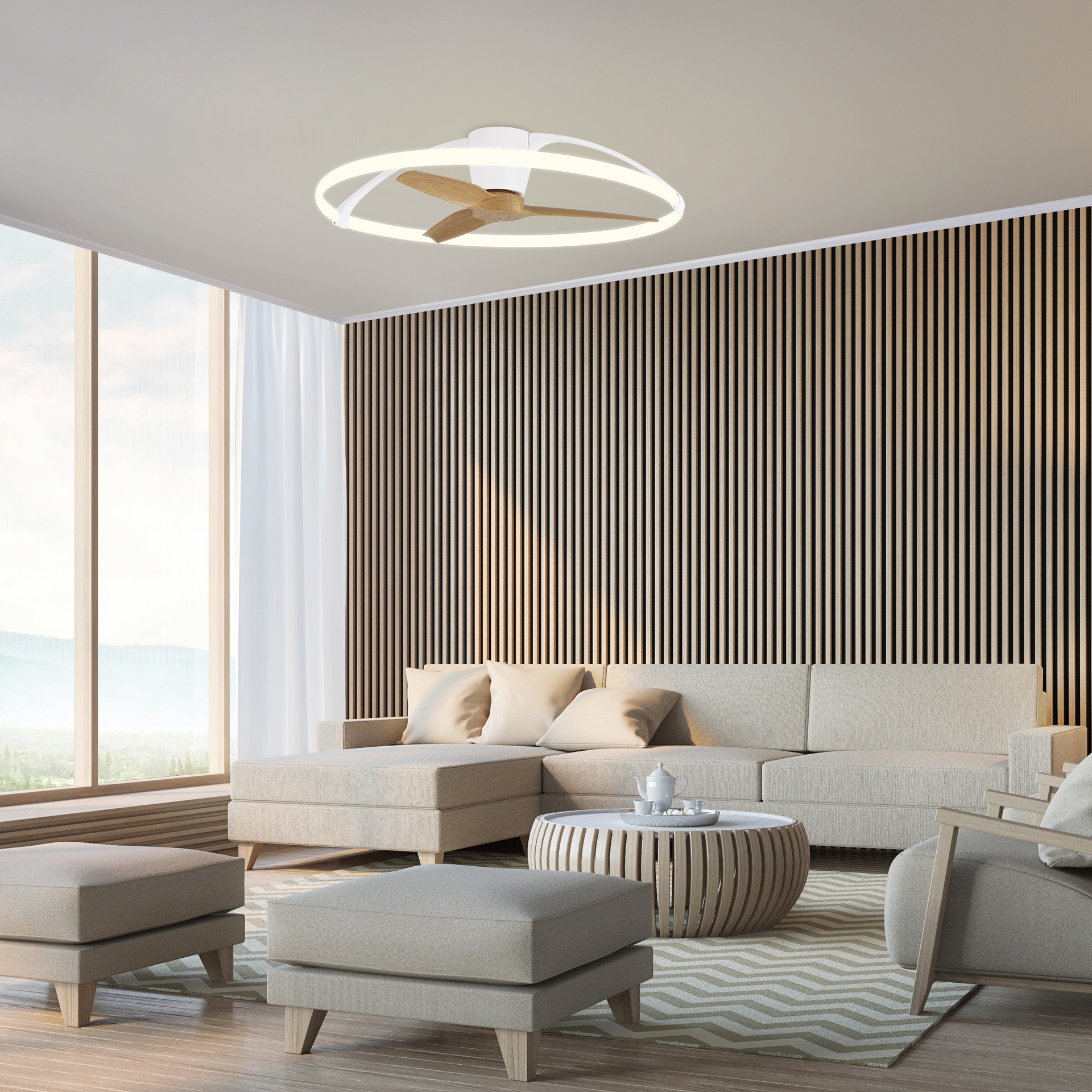NEPAL * VENTILATEUR LED BLANC/HÊTRE AVEC TÉLÉCOMMANDE