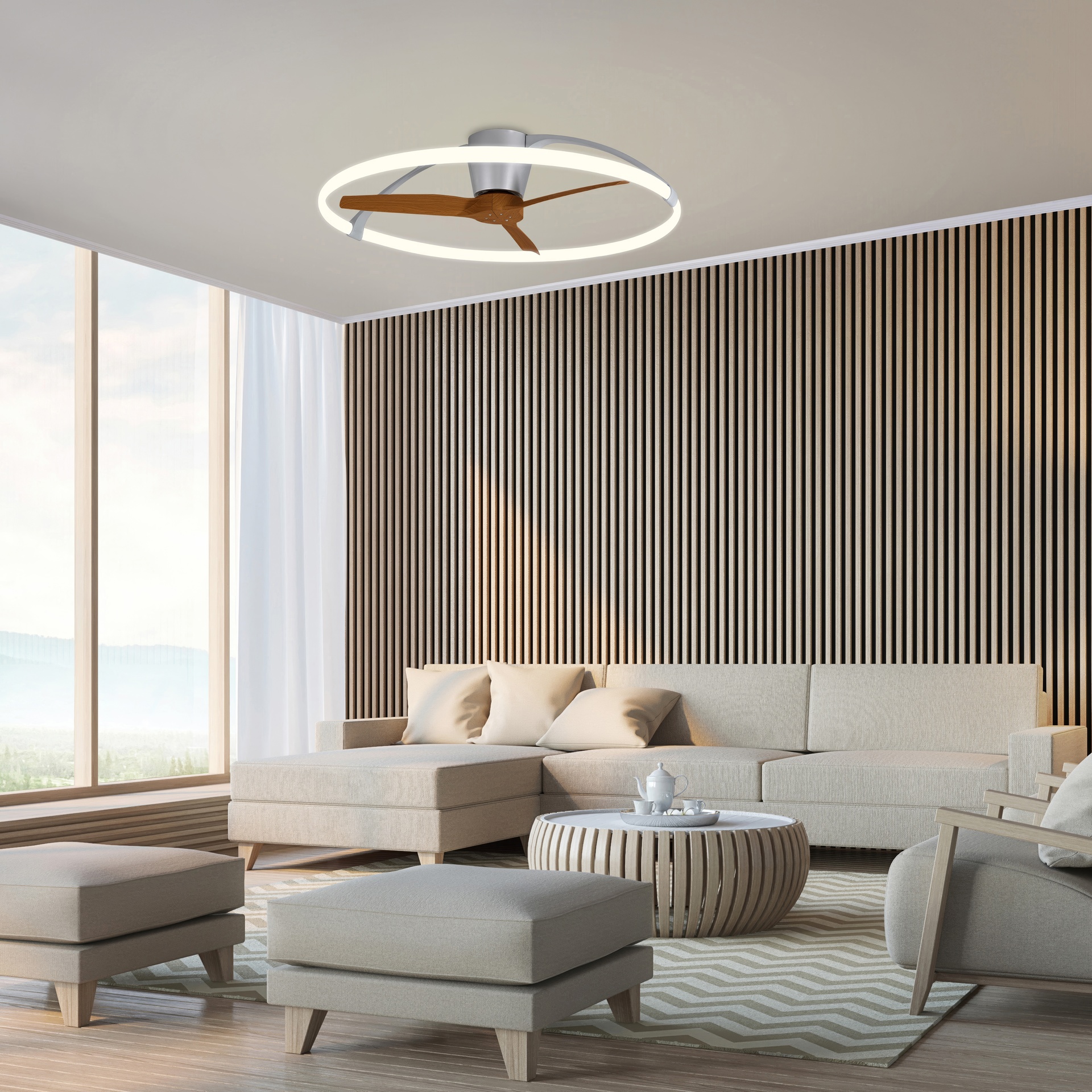 NEPAL * VENTILATEUR LED ARGENT/NOYER AVEC TÉLÉCOMMANDE