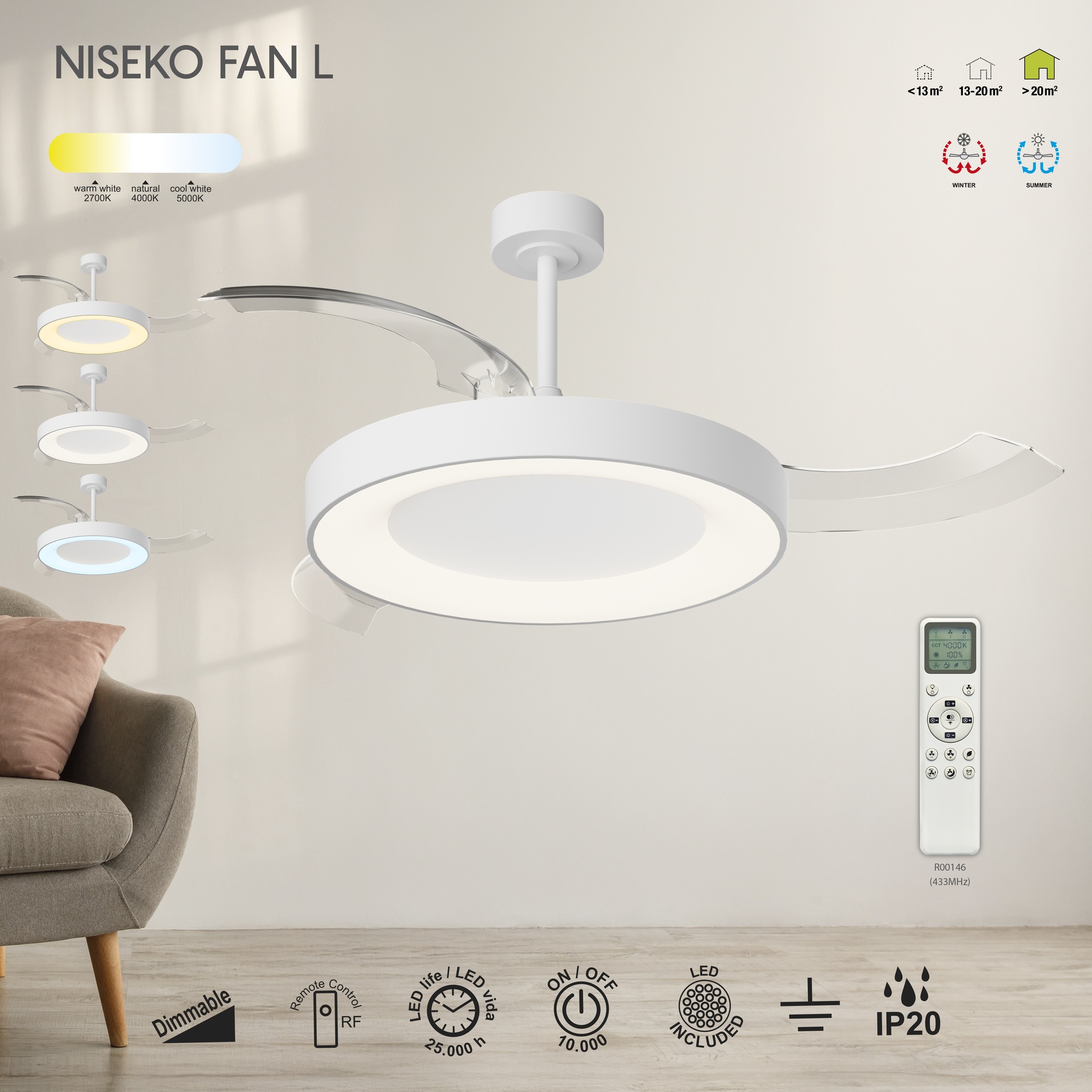 NISEKO FAN L * GRAND VENTILATEUR DE PLAFOND - BLANC ****L****