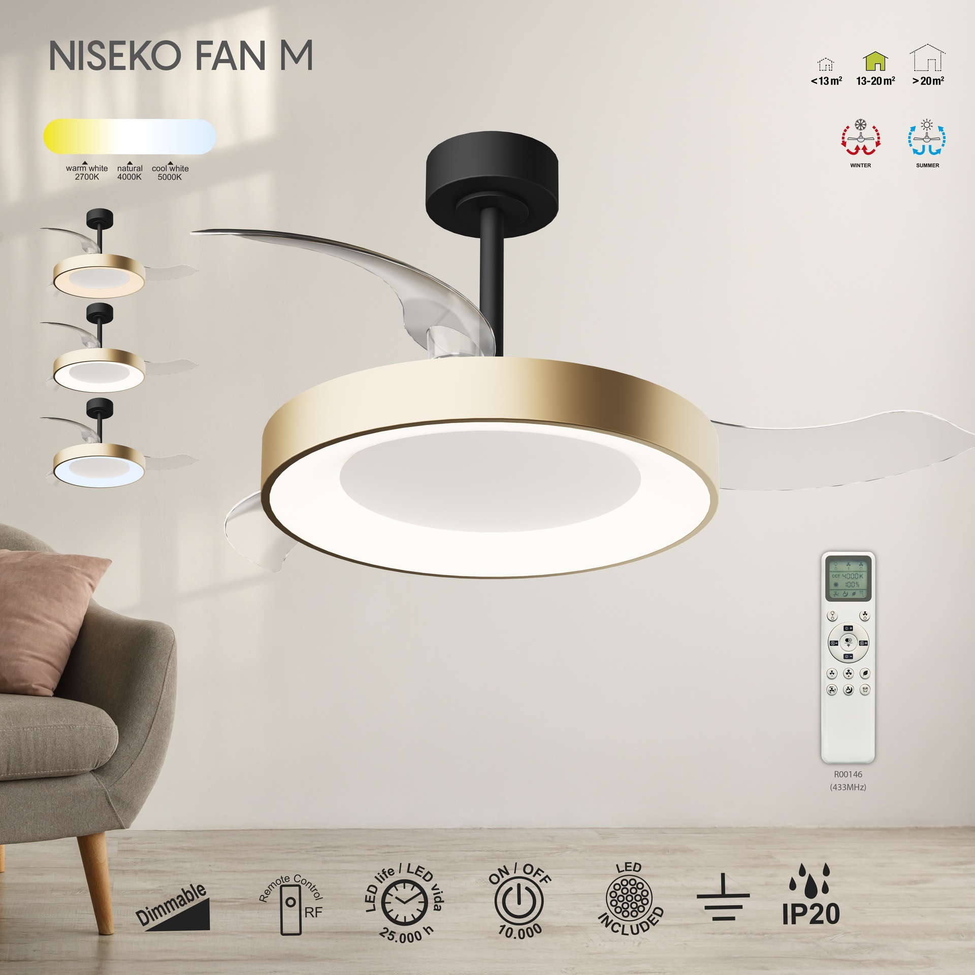 VENTILATEUR DE PLAFOND NISEKO FAN M* GRAND - OR ****L****