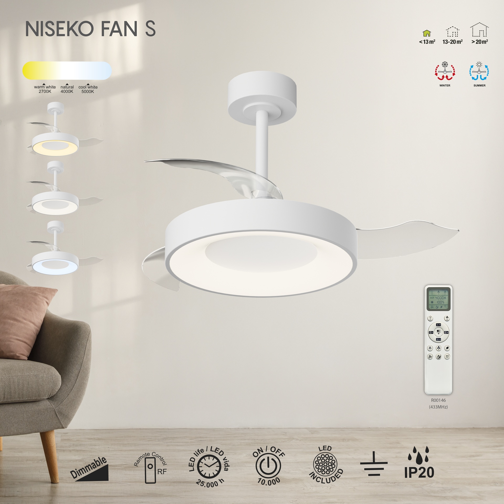 VENTILATEUR DE PLAFOND / MINI VENTILATEUR NISEKO FAN S* - BLANC ****L****