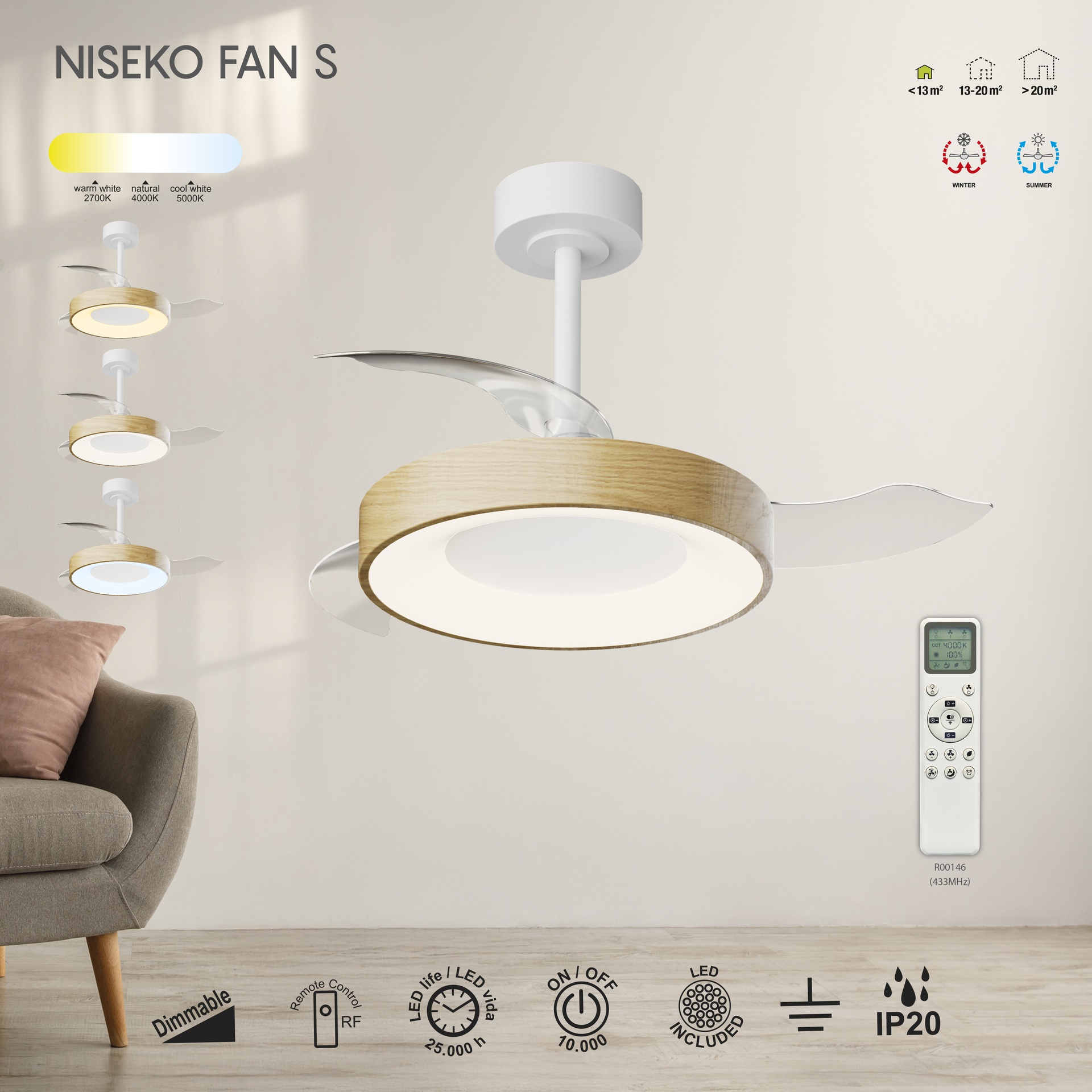 VENTILATEUR DE PLAFOND / MINI VENTILATEUR NISEKO FAN S* - BOIS ****L****