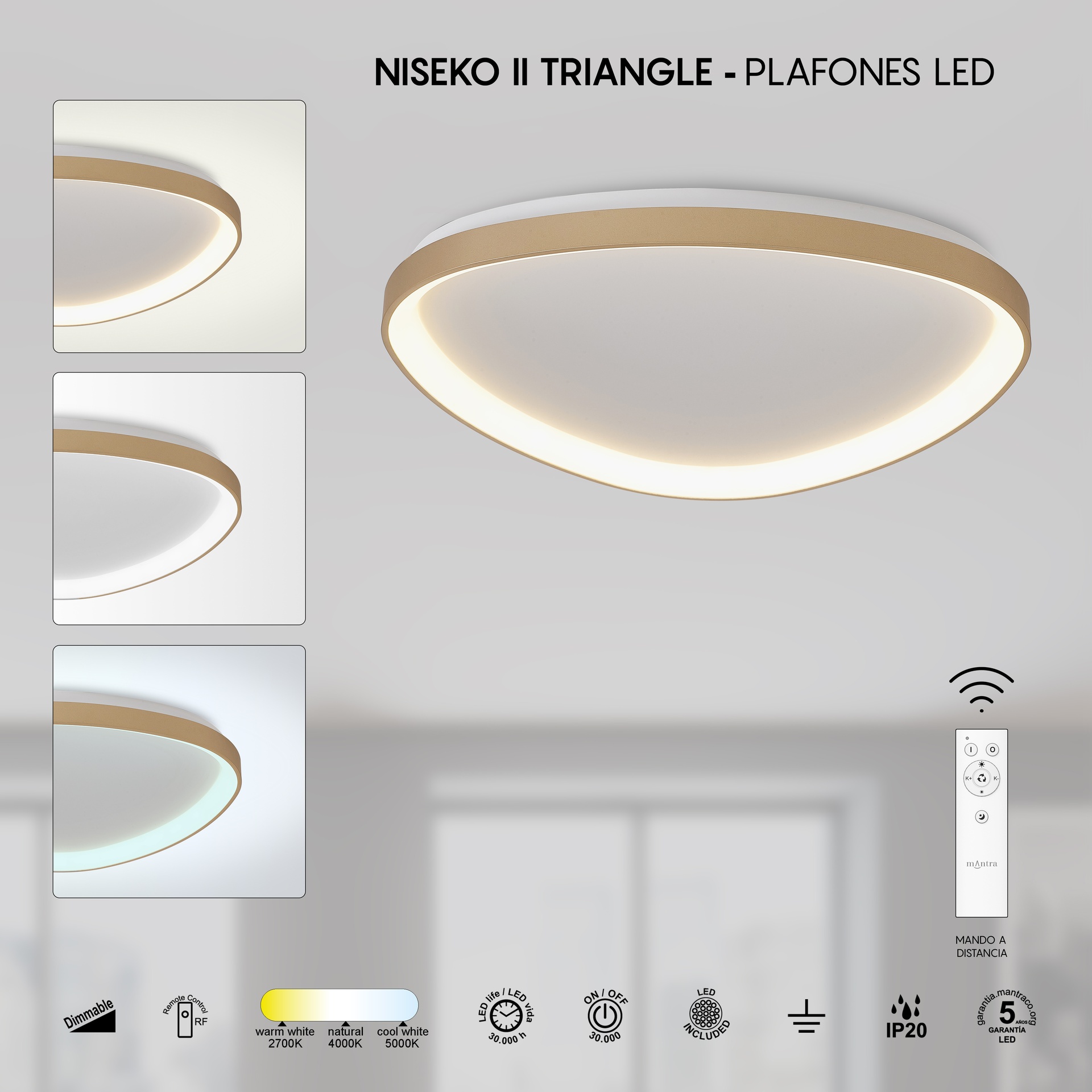 NISEKO II * PLAFONNIER LED TRIANGULAIRE 61 CM - AVEC CONTRÔLE CCT - OR