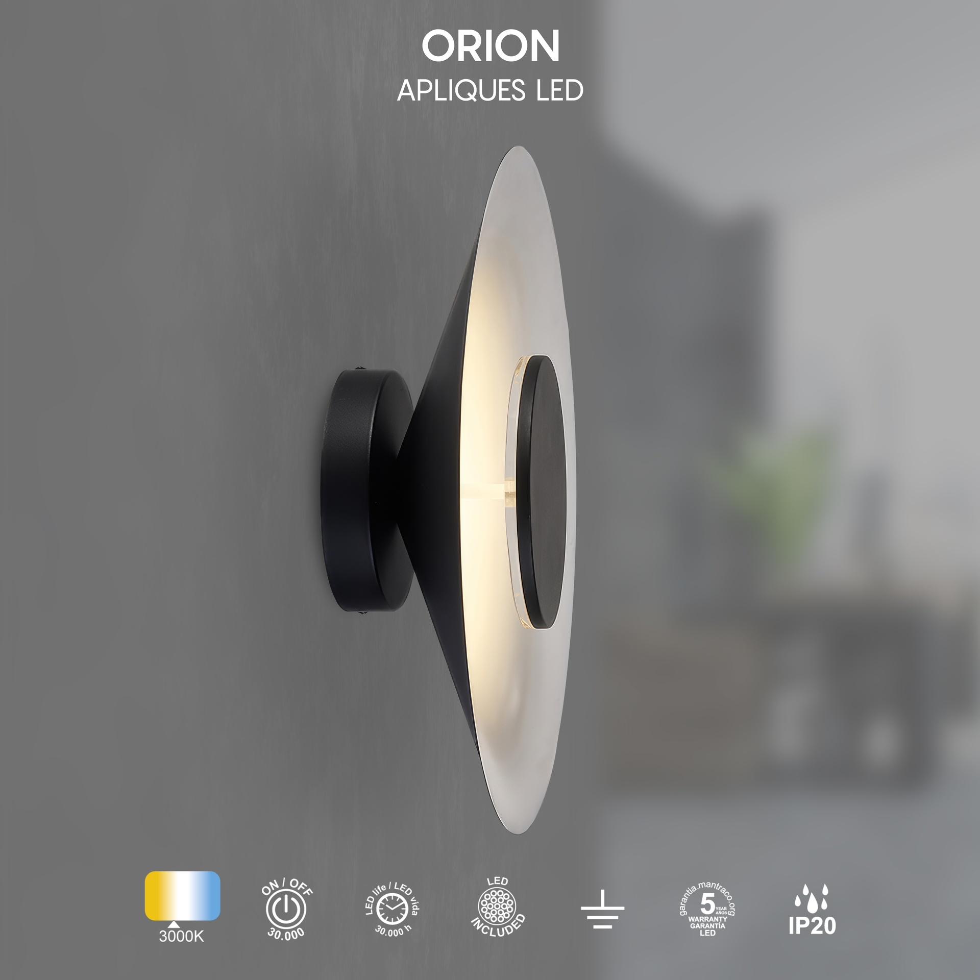 ORION, œuvre d’Hugo Tejada, allie créativité et précision technologique. Elle comprend des appliques murales et des plafonniers, offrant des solutions adaptables à différents espaces. Fabriqués en acrylique/blanc, aluminium/fer/acrylique, aluminium, les luminaires sont disponibles en finitions noir, noir et cuir, noir et bois ou noir et or, offrant robustesse et style à chaque application. Ils intègrent la technologie LED avec des températures de couleur de 3000 K, garantissant confort et efficacité énergétique. Grâce à leur indice de protection IP20, ils sont parfaits pour les intérieurs, garantissant durabilité et fiabilité. ORION reflète l’équilibre entre esthétique soignée et performances techniques de haut niveau.