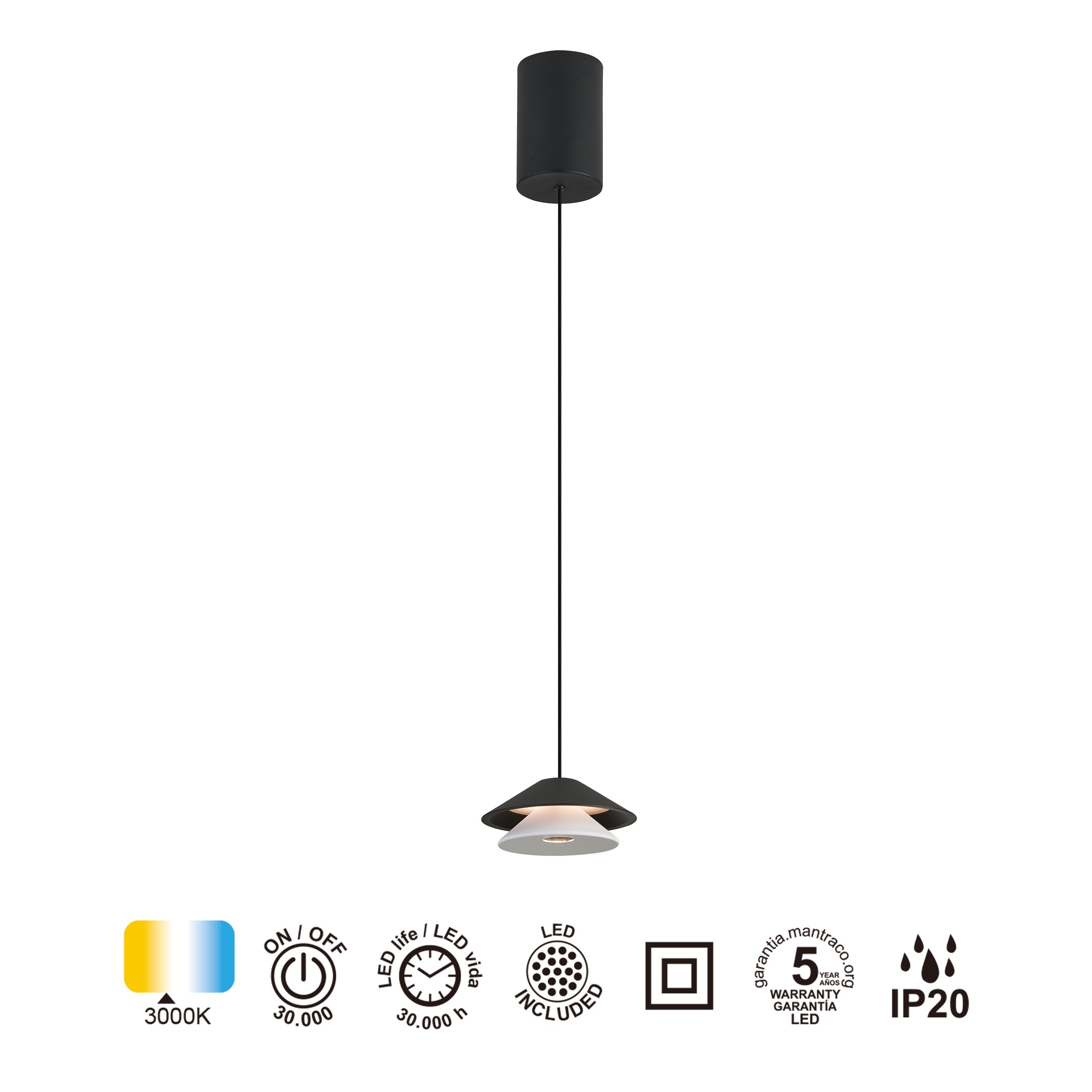 MINI * LAMPE SUSPENDU LED 5W NOIRE