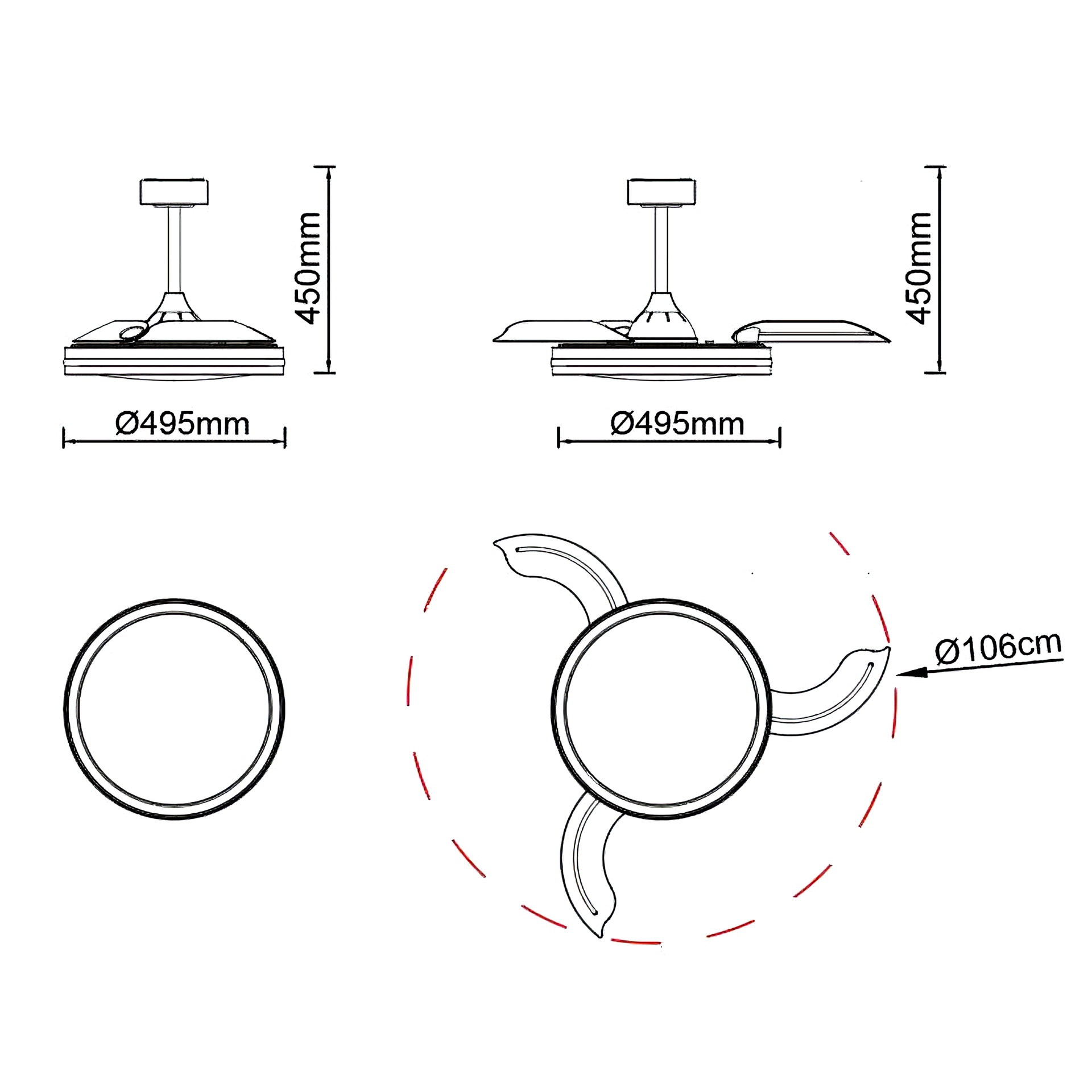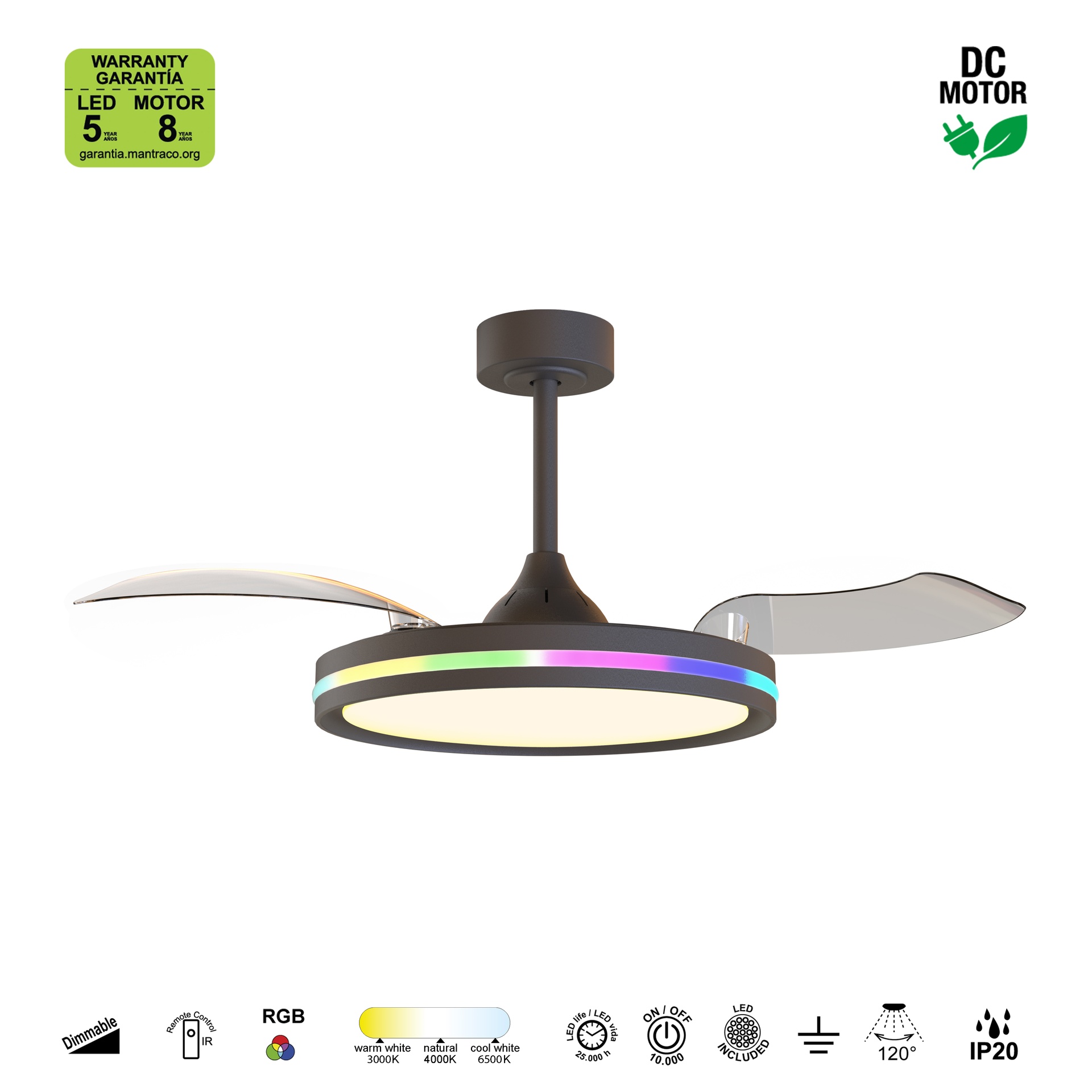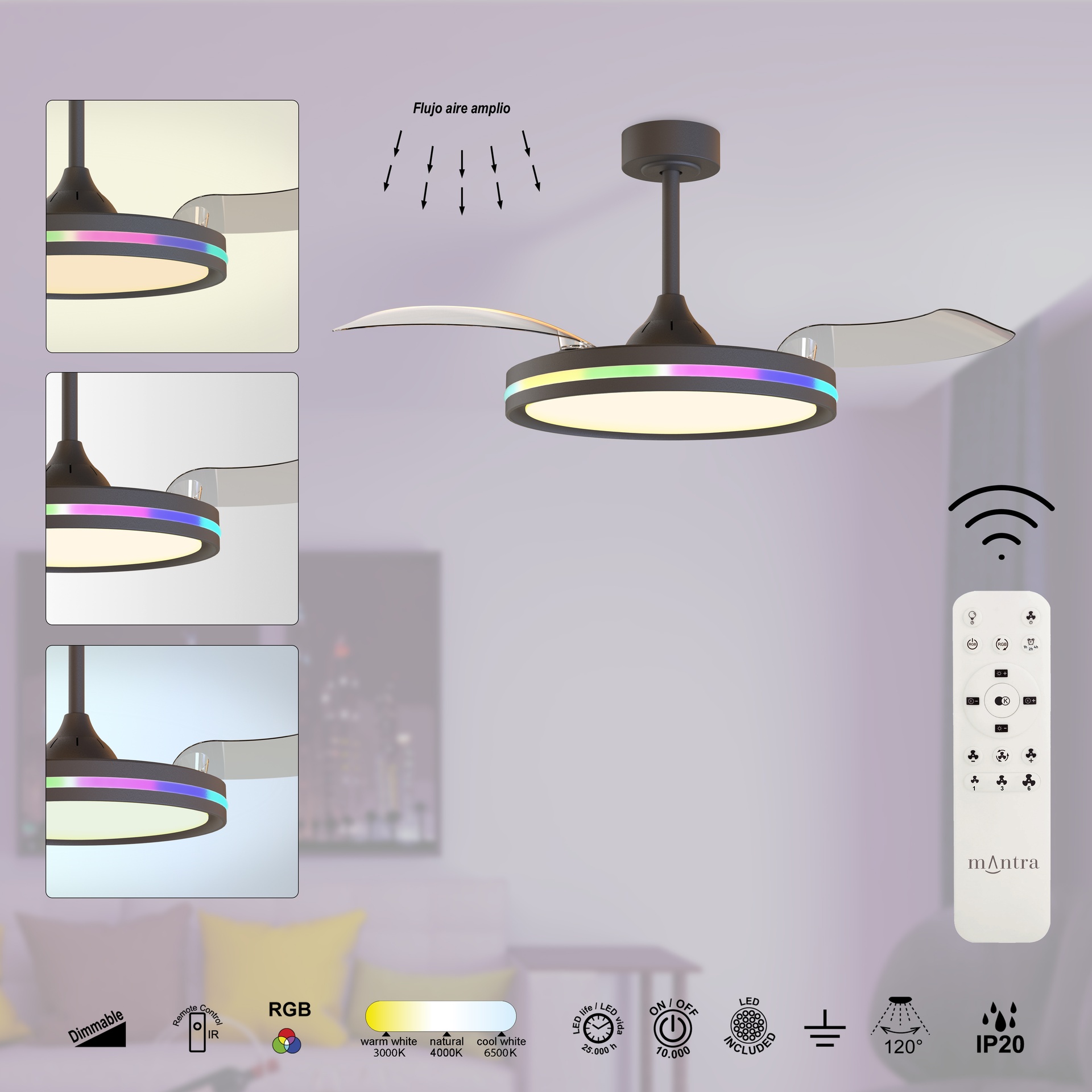 RAFAGA * Ventilateur LED noir 50W-3000K-6500K *****L*****