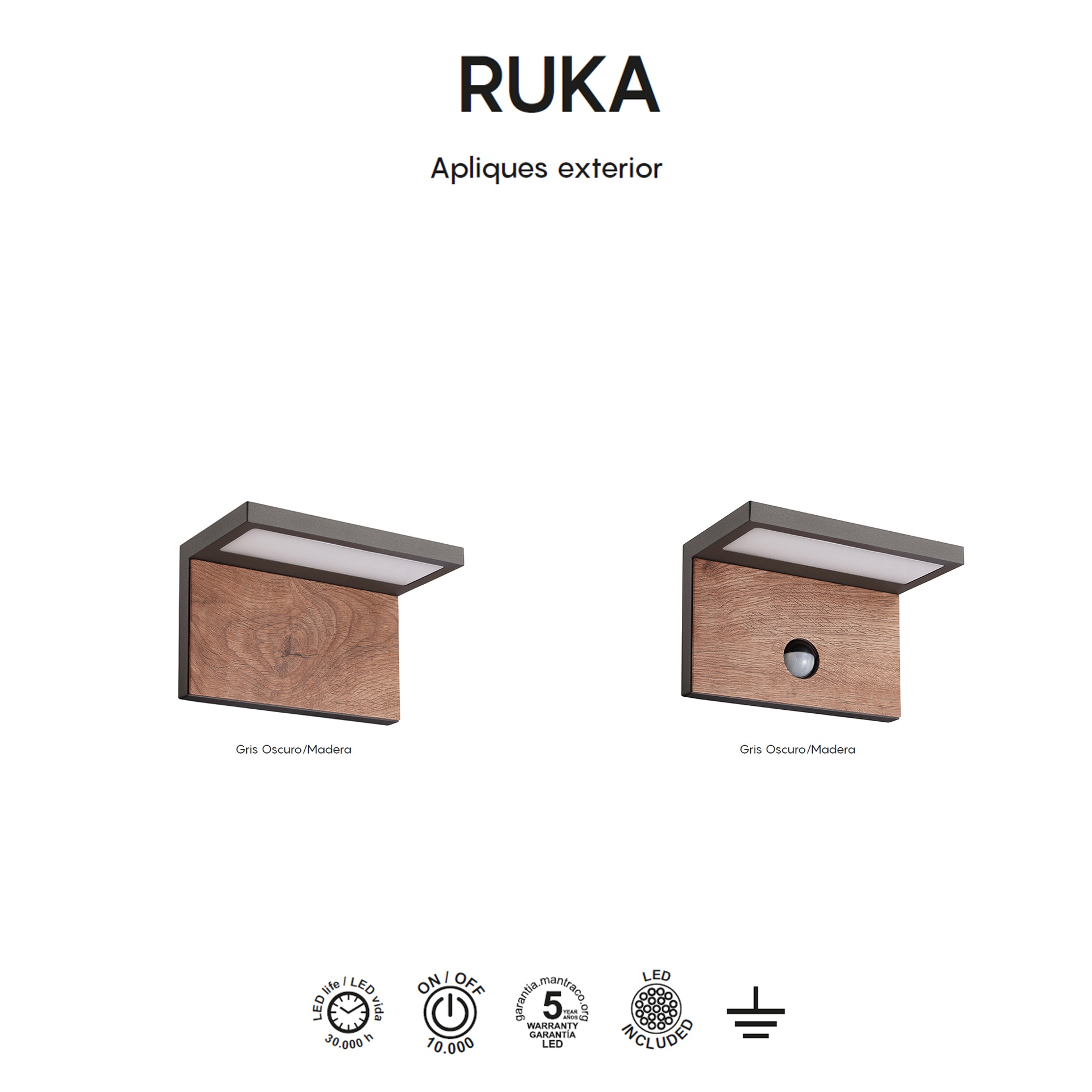 Conçu par MANTRA TEAM, RUKA offre une interprétation contemporaine et technique de l’extérieur. Sa gamme comprend des appliques murales, des bornes d’éclairage et des luminaires muraux, offrant des solutions adaptables à différents espaces. Fabriqués en aluminium/PC et déclinés en finition gris foncé, ces luminaires allient robustesse et style à toutes les applications. Ils intègrent la technologie LED avec des températures de couleur de 3000 K, garantissant confort et efficacité énergétique. Certifiés IP54 et IP65, ils conviennent à une utilisation en extérieur et garantissent des performances stables même dans des conditions difficiles. RUKA allie esthétique raffinée et performances techniques de haut niveau.