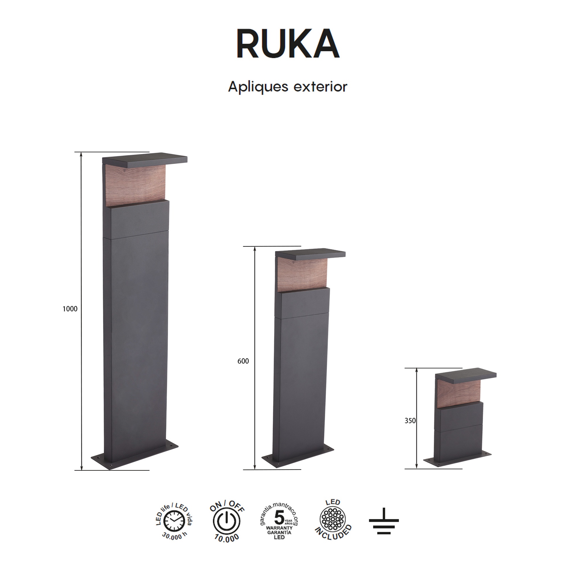 Conçu par MANTRA TEAM, RUKA offre une interprétation contemporaine et technique de l’extérieur. Sa gamme comprend des appliques murales, des bornes d’éclairage et des luminaires muraux, offrant des solutions adaptables à différents espaces. Fabriqués en aluminium/PC et déclinés en finition gris foncé, ces luminaires allient robustesse et style à toutes les applications. Ils intègrent la technologie LED avec des températures de couleur de 3000 K, garantissant confort et efficacité énergétique. Certifiés IP54 et IP65, ils conviennent à une utilisation en extérieur et garantissent des performances stables même dans des conditions difficiles. RUKA allie esthétique raffinée et performances techniques de haut niveau.