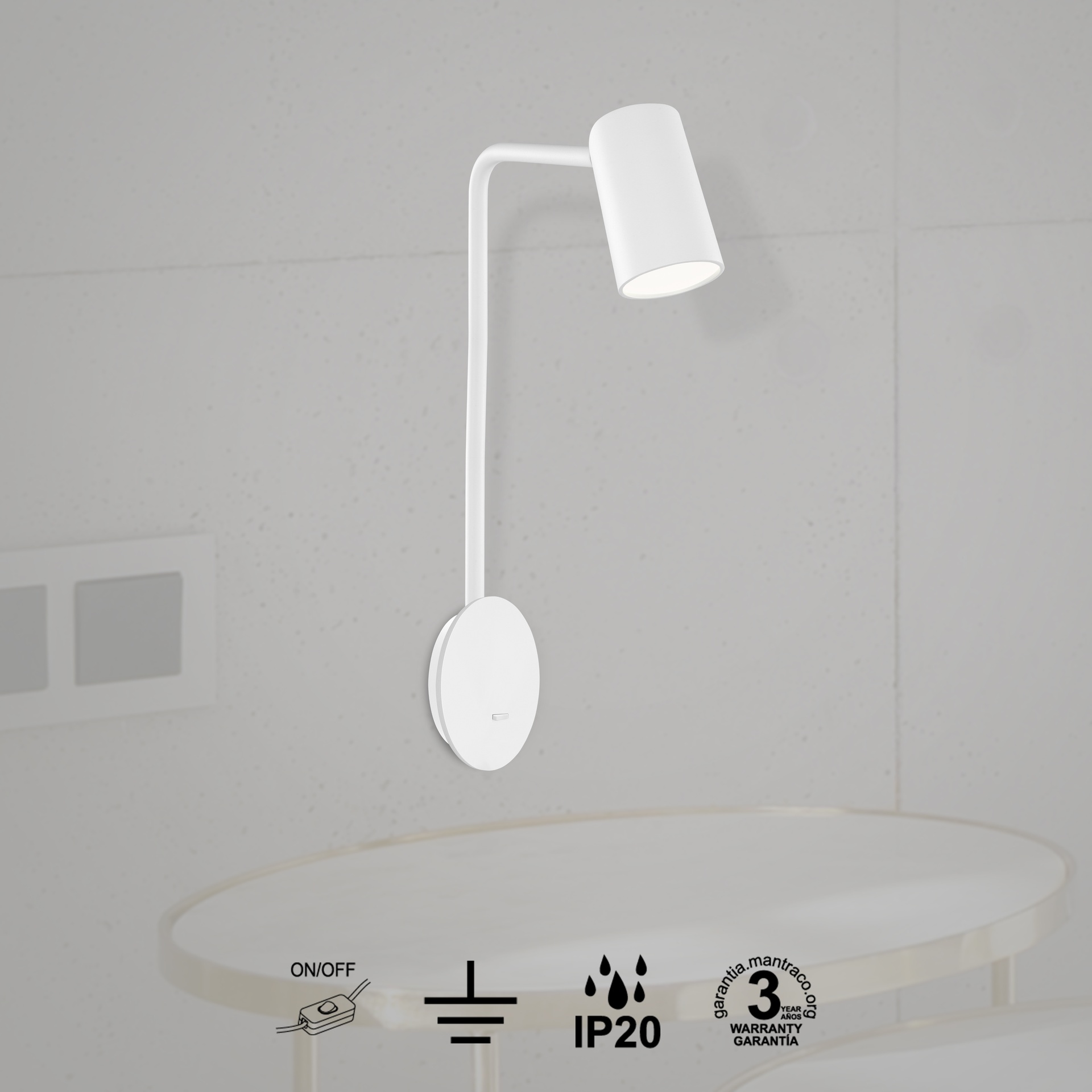 APPLIQUE MURALE LED BLANC SAL*GU10 AVEC INTERRUPTEUR BLANC