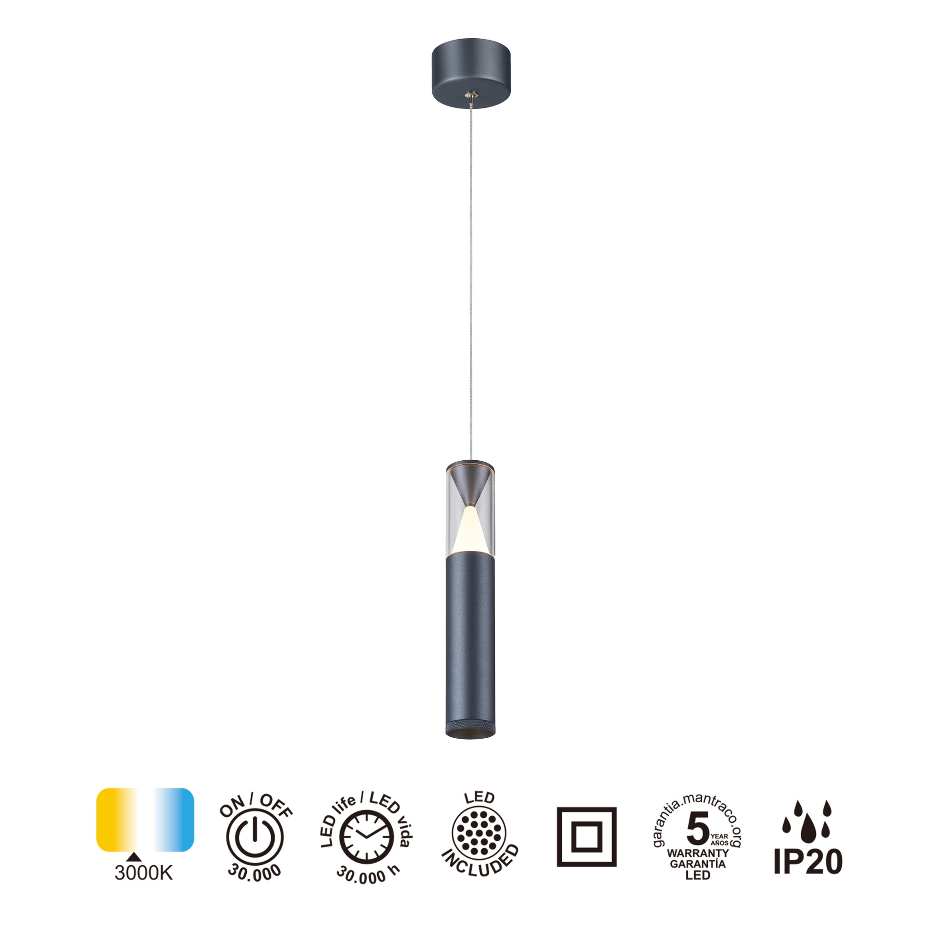 SPARK * SUSPENSION 1L LED 7W - Gris foncé