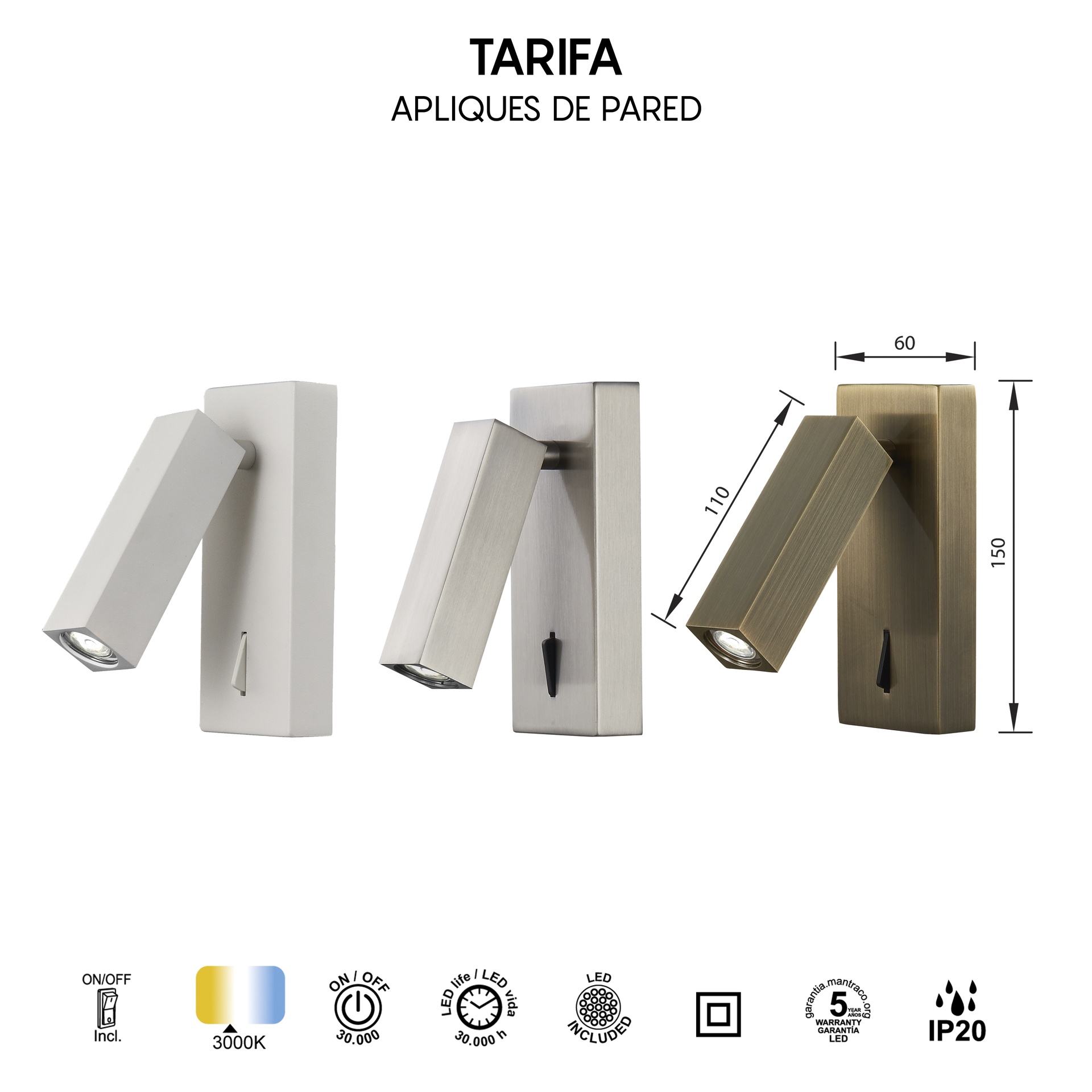 TARIFA, conçue par MANTRA TEAM, propose une interprétation contemporaine et technique de la technologie tek. Elle comprend des appliques murales offrant des solutions adaptables à différents espaces. Fabriquées en fer et en aluminium, ces luminaires sont disponibles en finitions blanc mat, cuir ou nickel satiné, alliant robustesse et style à chaque application. Elles intègrent la technologie LED avec des températures de couleur de 3000 K, garantissant confort et efficacité énergétique. Grâce à leur indice de protection IP20, elles sont idéales pour les intérieurs, garantissant durabilité et fiabilité. TARIFA reflète l’équilibre entre esthétique soignée et performances techniques de haut niveau.