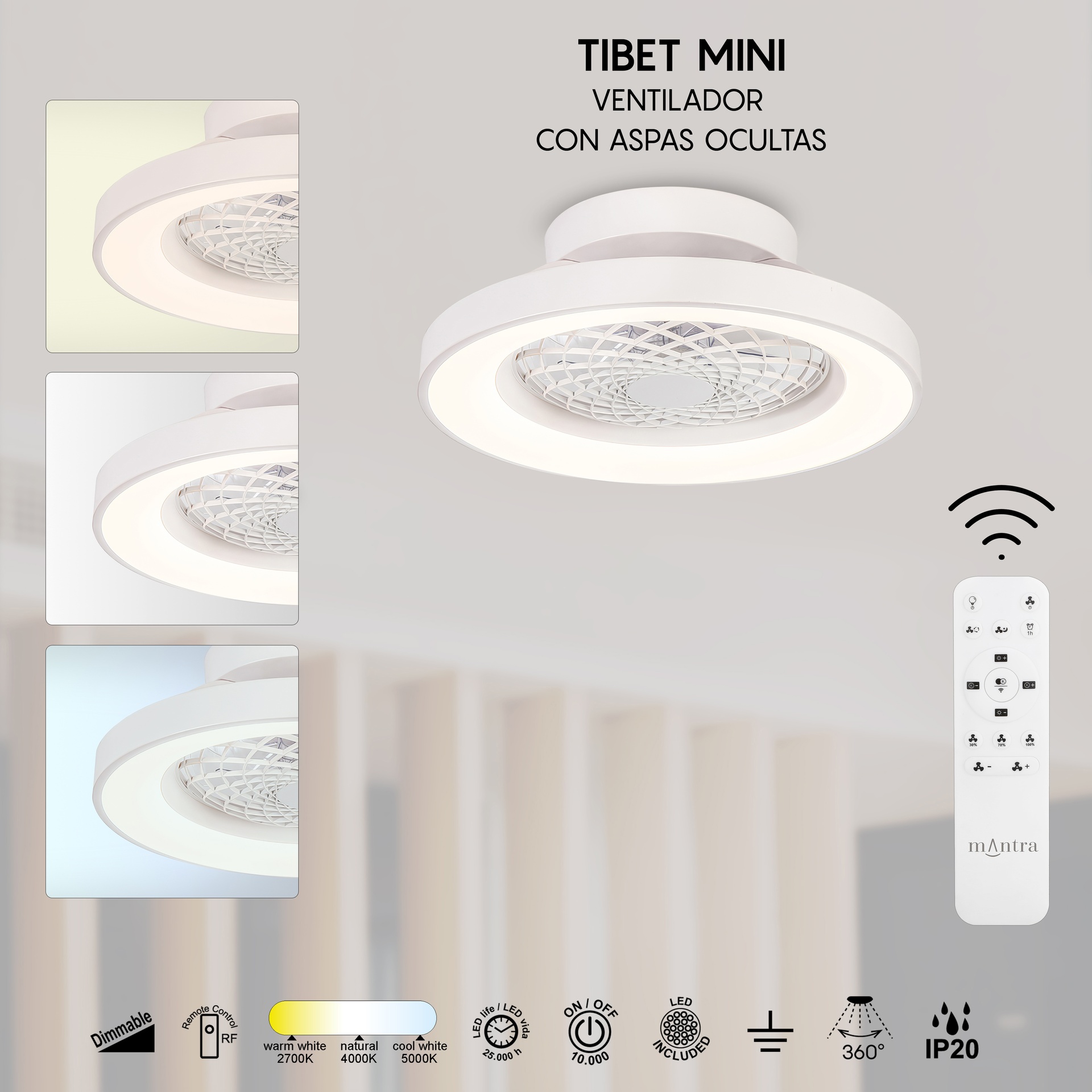 TIBET MINI * VENTILATEUR DE PLAFOND À LED BLANC AVEC TÉLÉCOMMANDE