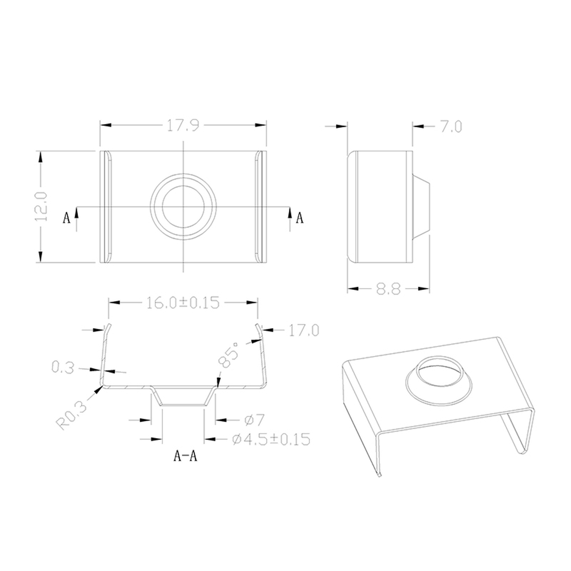 CLIP DE FIXATION EN ACIER INOXYDABLE PROFIL 2000*17,1*8,5mm