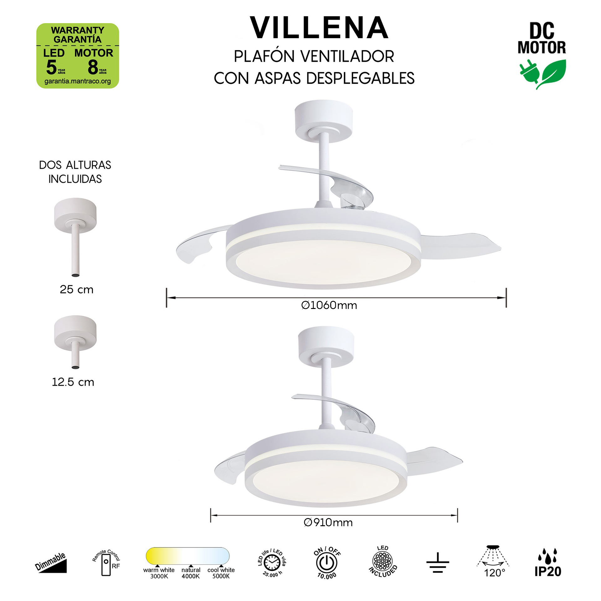 VILLENA * PLAFON / VENTILADOR - BLANCO - S