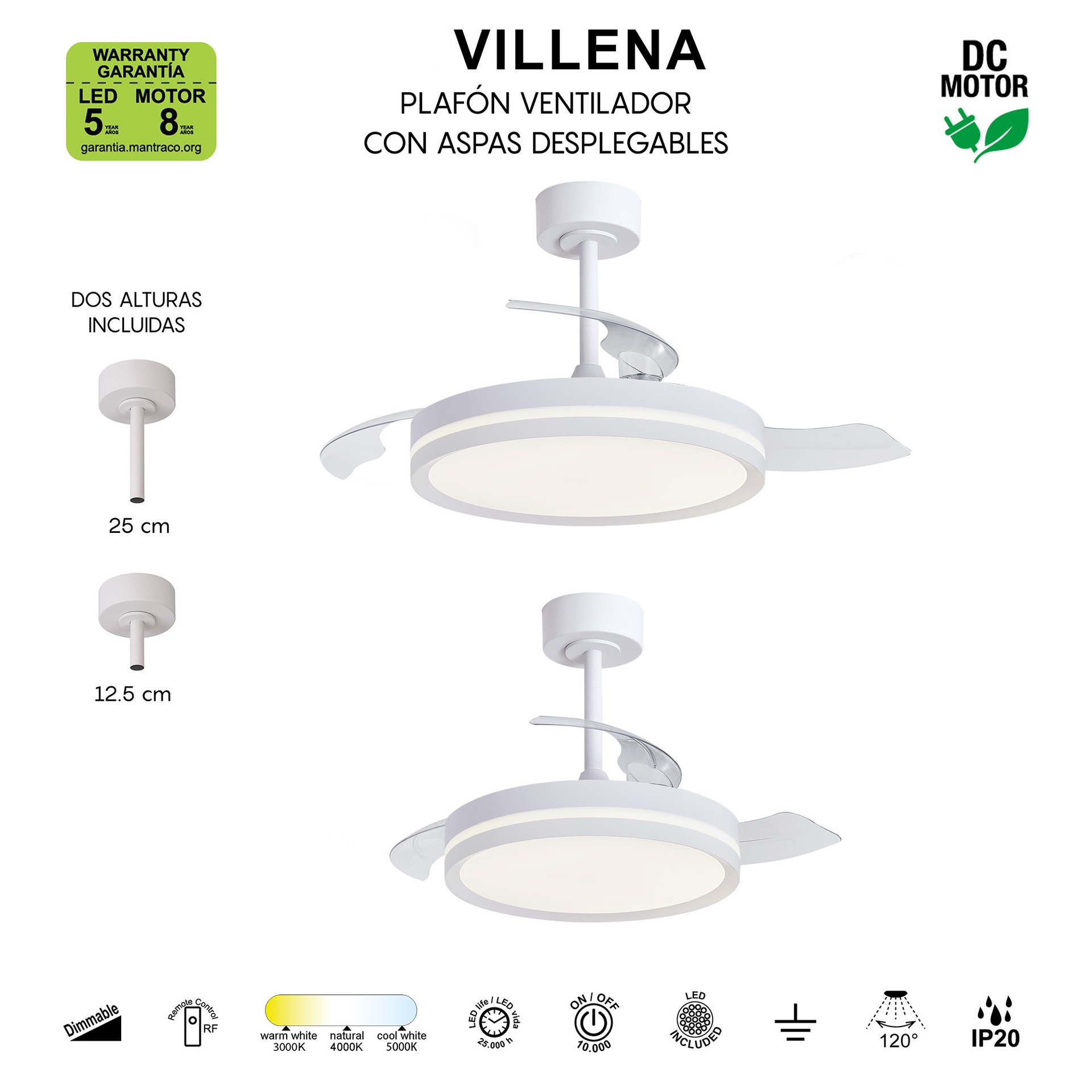VILLENA * PLAFON / VENTILADOR - BLANCO - M