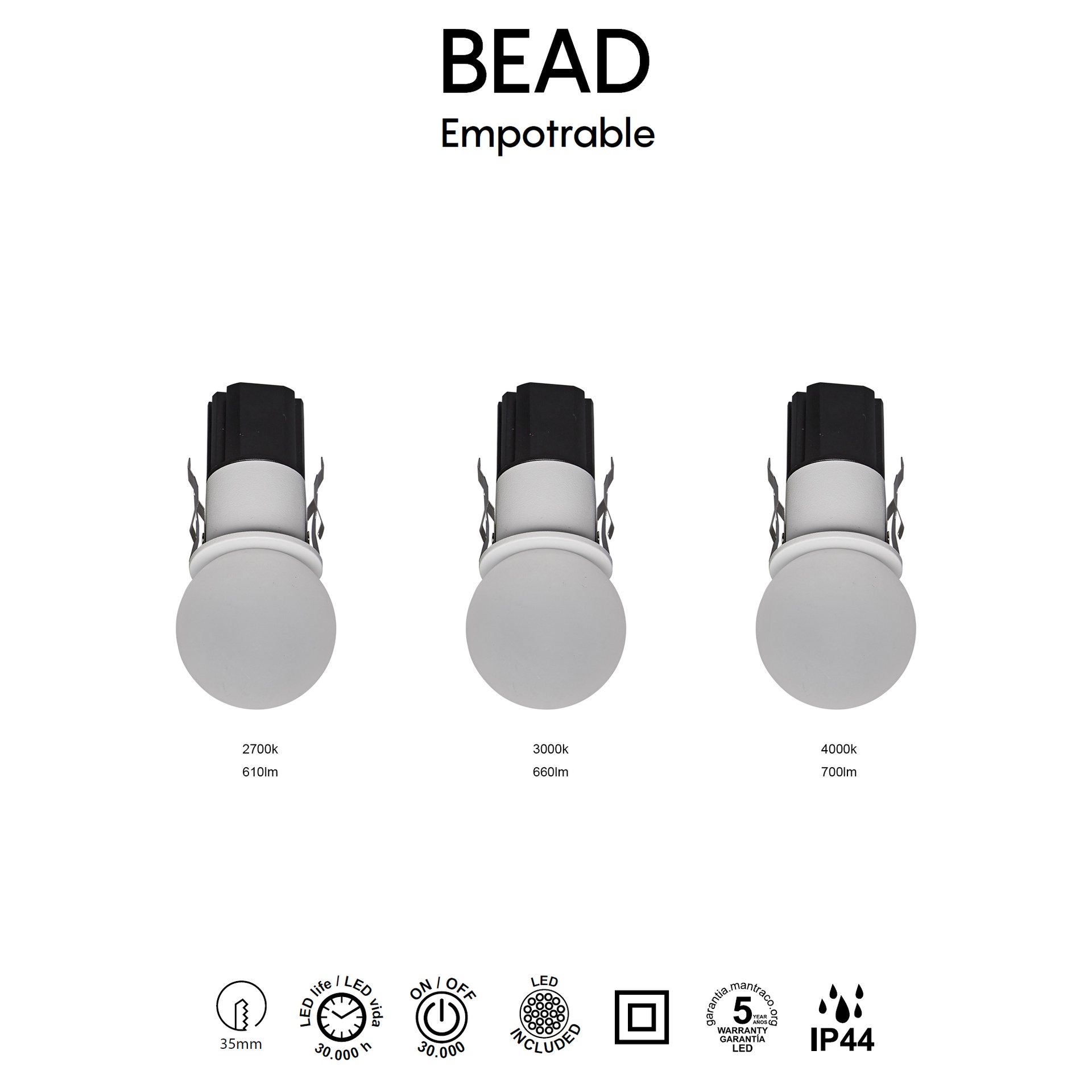 BEAD, progettato da MANTRA TEAM, offre un’interpretazione contemporanea e tecnica della tecnologia. È composto da faretti e strisce, offrendo soluzioni adattabili a diversi spazi. Gli apparecchi sono realizzati in alluminio e disponibili in finitura bianca, garantendo resistenza e stile in ogni applicazione. Incorporano tecnologia LED con temperature di colore 2700K, 3000K e 4000K, garantendo comfort ed efficienza energetica. BEAD è sinonimo di design curato ed efficienza luminosa per ogni tipo di spazio.