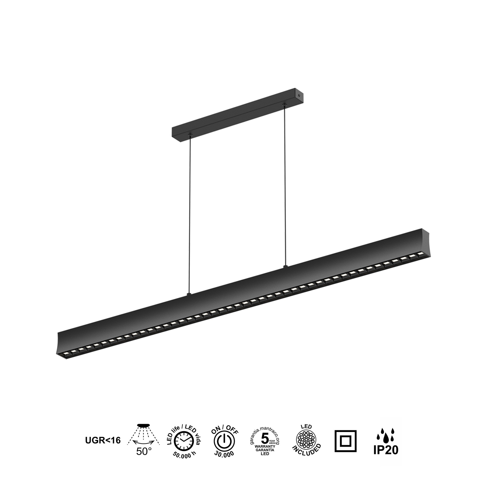 HANOK * LAMPADA LINEALE LED 38W 3000K 50º NERA