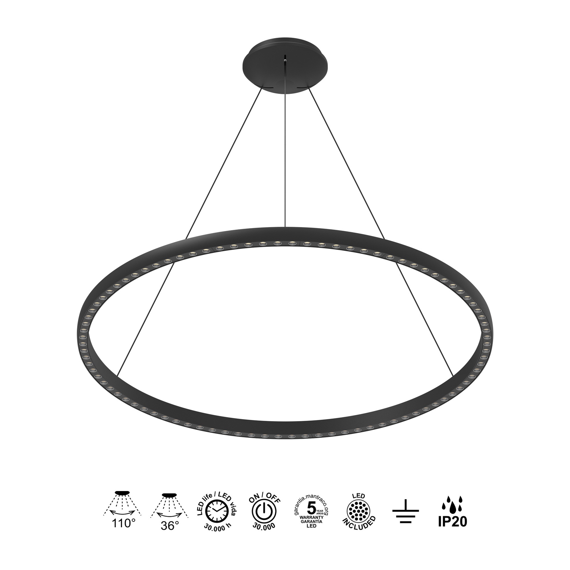 RIUMAR * SOSPESO LED 60+20W D.92CM 3000K NERO