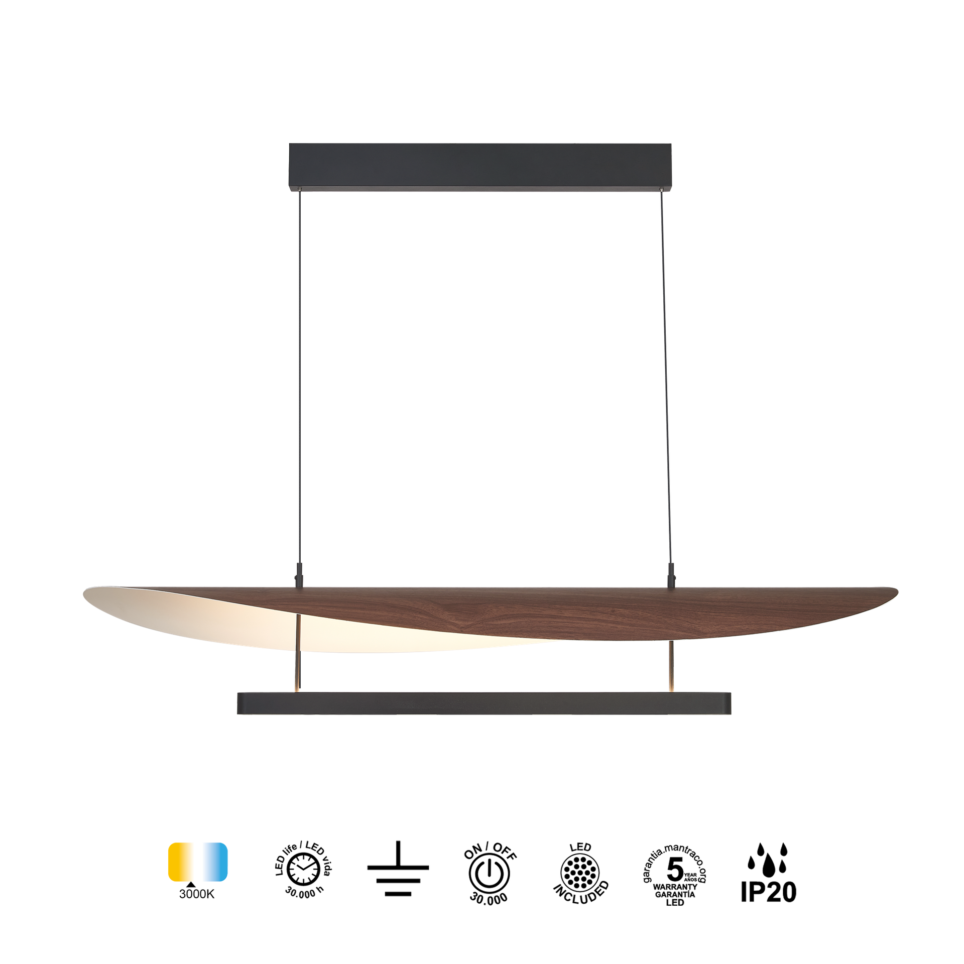 IP20 Dimable Garantia 5 Clase 2 On Off 30 Led integrado 3000K