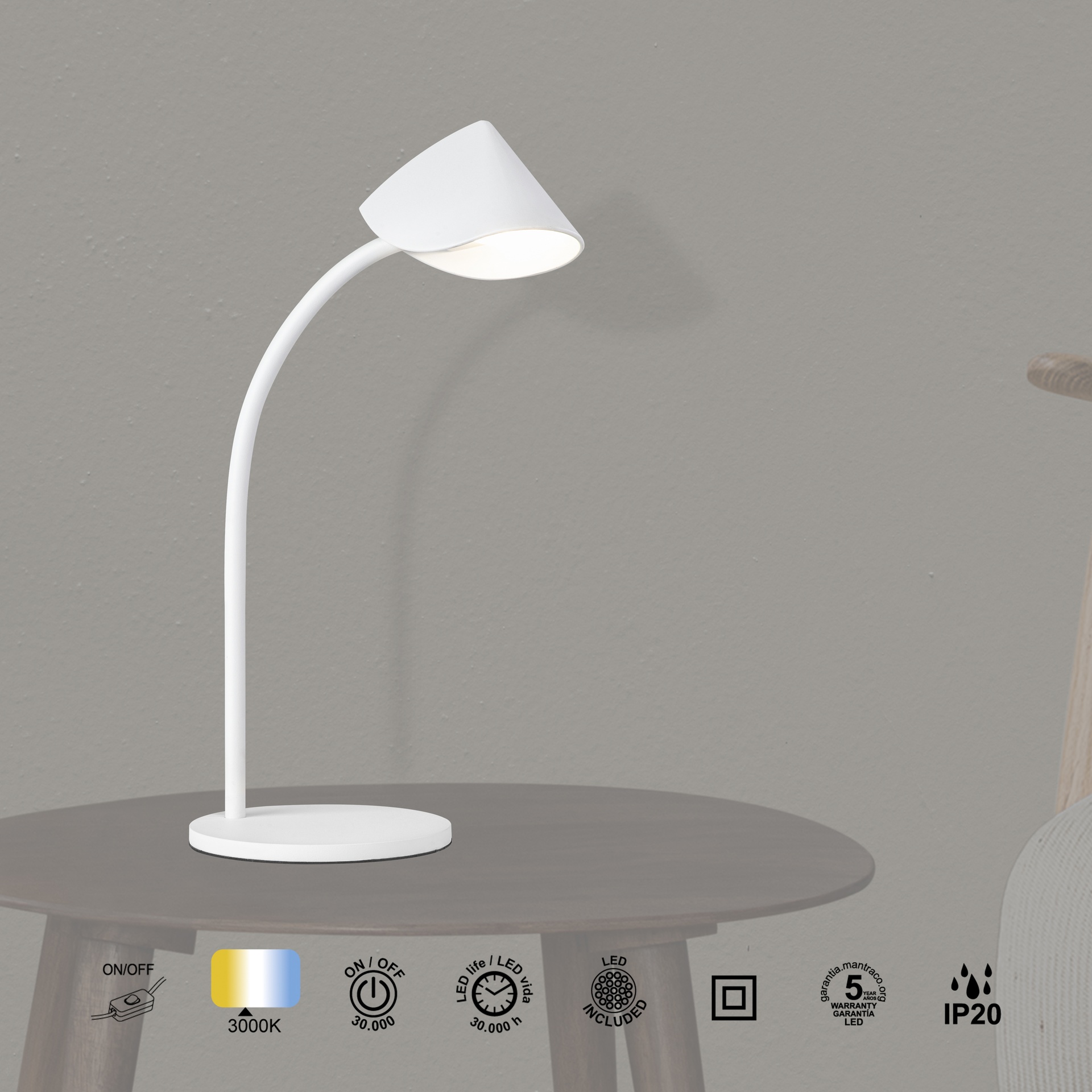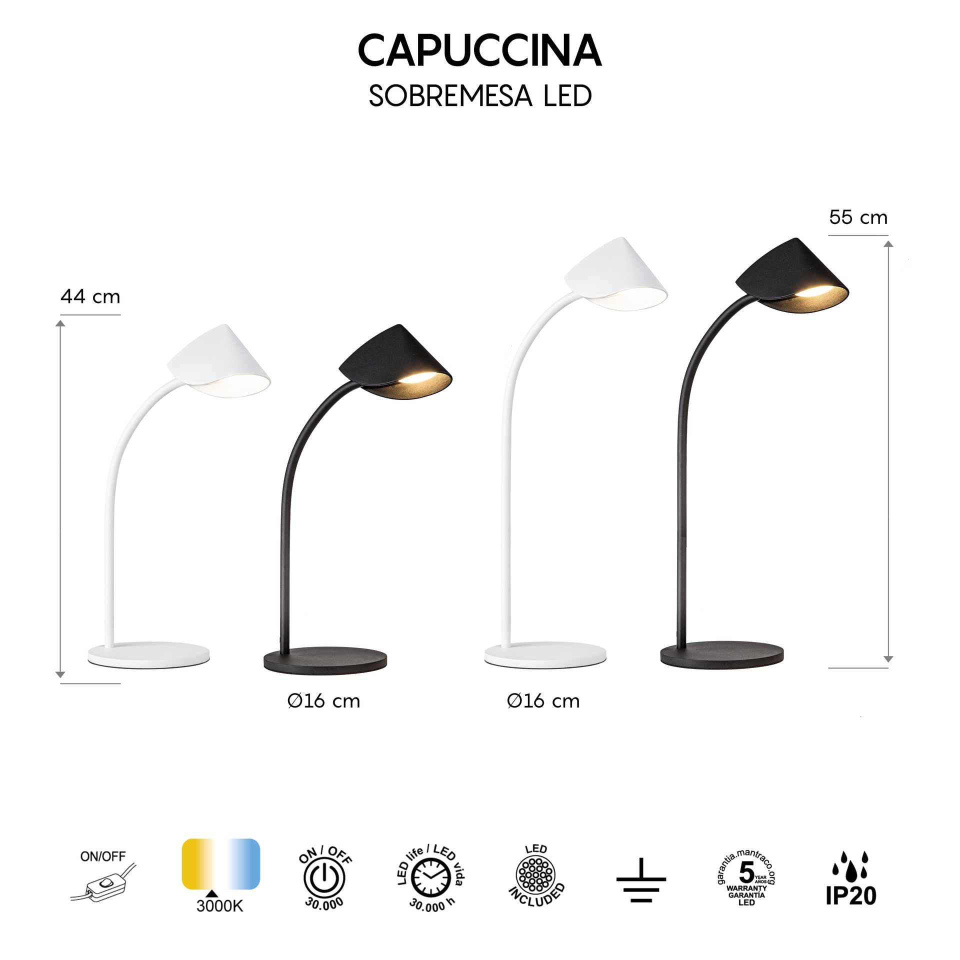 CAPUCCINA * Sobremesa / Flexos Blanco - LED 8,5W - 3000KK - 610 lms