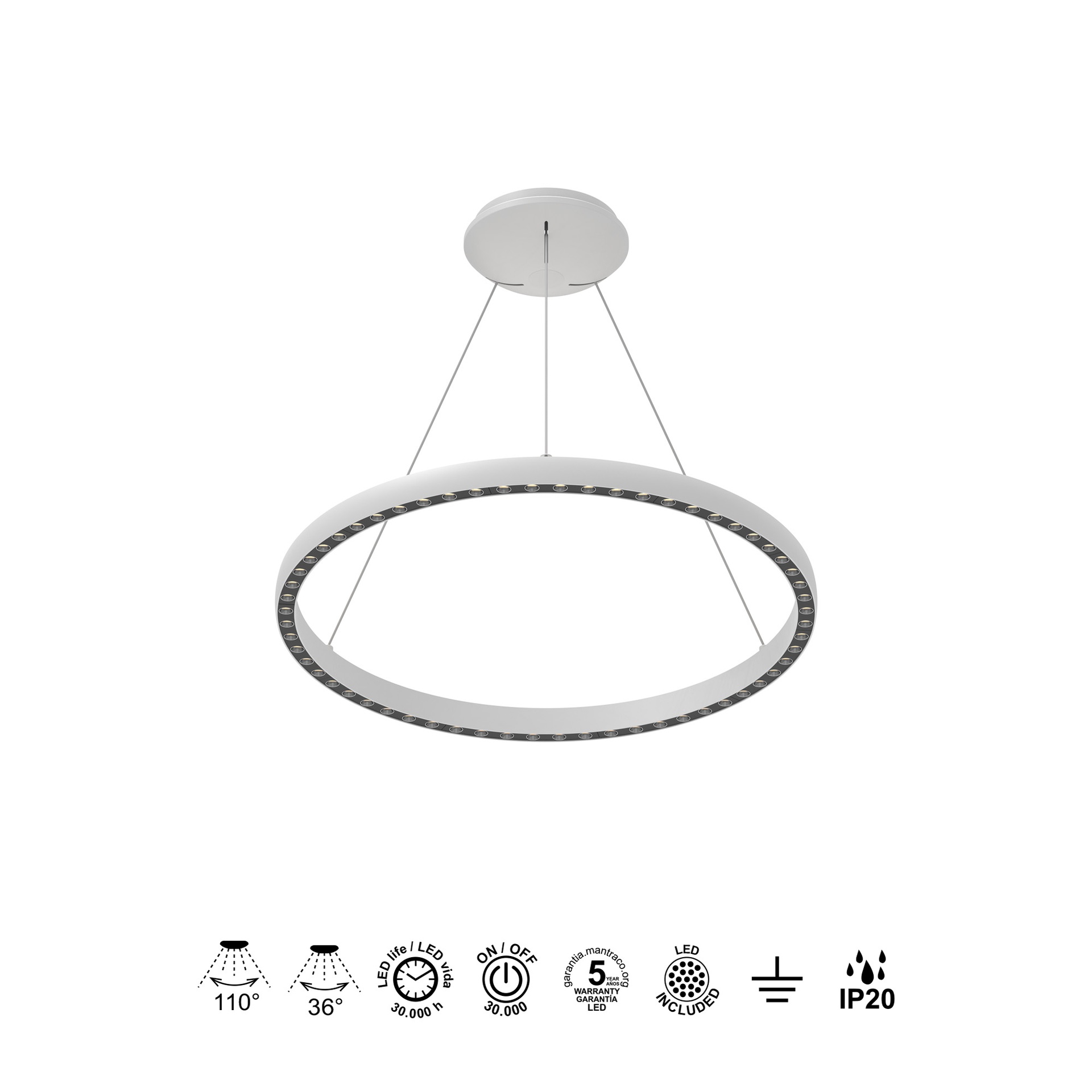 RIUMAR * COLGANTE LED 40+15W D.62CM 3000K BLANCO